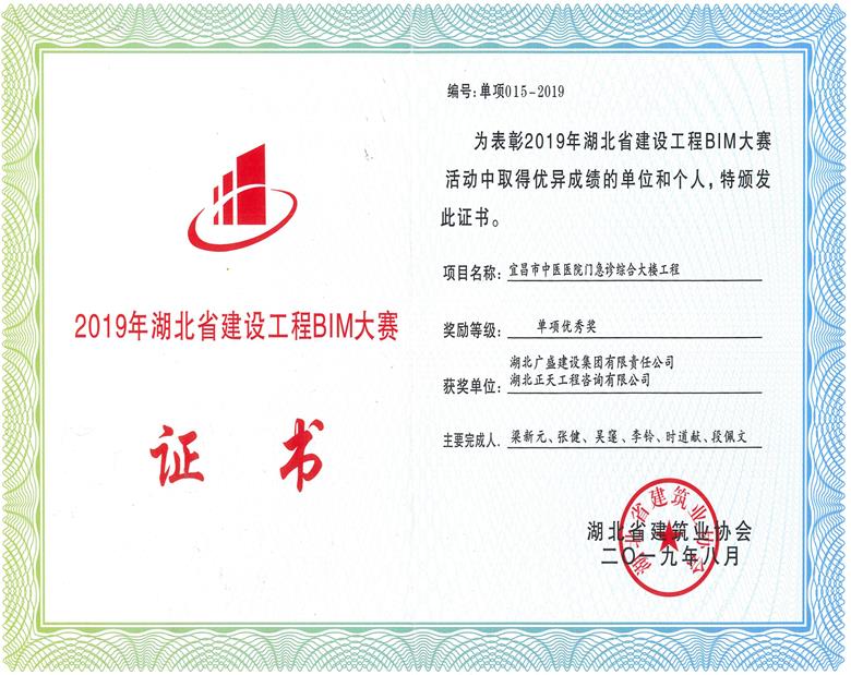 湖北省建设工程BIM大赛单项优秀奖…
