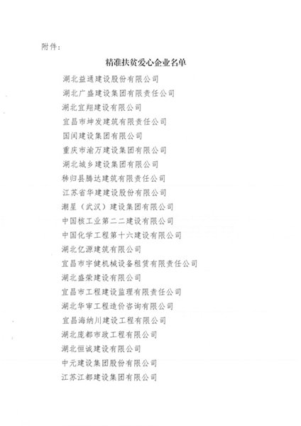 为了认真贯彻落实习近平总书记关于扶贫开发工作重要讲话精神,2018年1月,在宜昌市建筑业协会的号召下,紧紧围绕市委、市政府提出的“两个率先”奋斗目标,IM网页版登录入口_IM(中国) 参与了精准扶贫实践活动。在此次活动中受到协会“爱心企业”表扬。帮扶村集体建设,热心于公益事业,是IM网页版登录入口_IM(中国) 的社会责任。把爱传递,是每个IM网页版登录入口_IM(中国)人的美德。