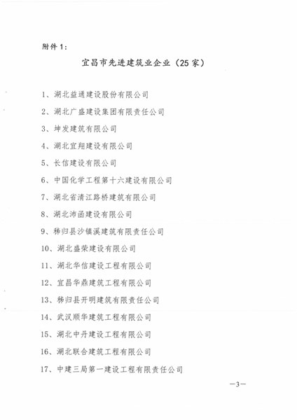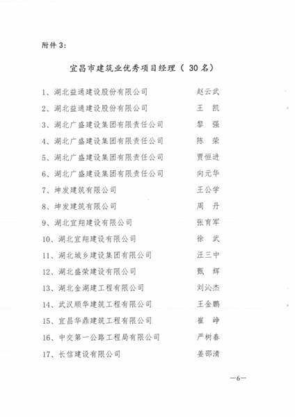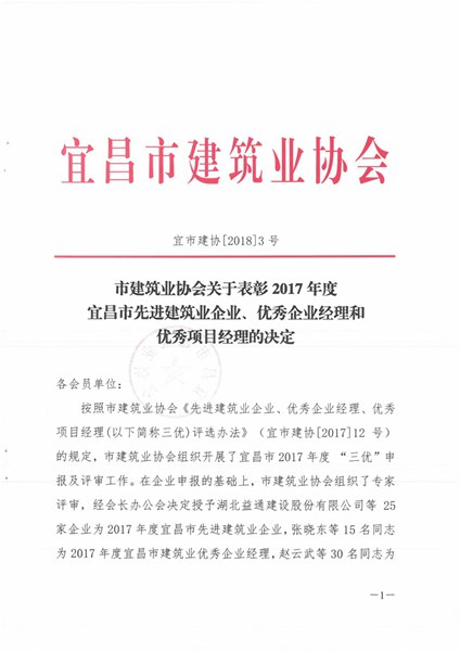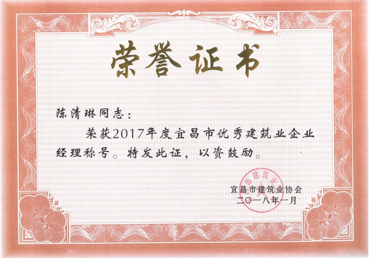 2017年度宜昌市建筑业优秀企业、优秀经理、优秀项目经理