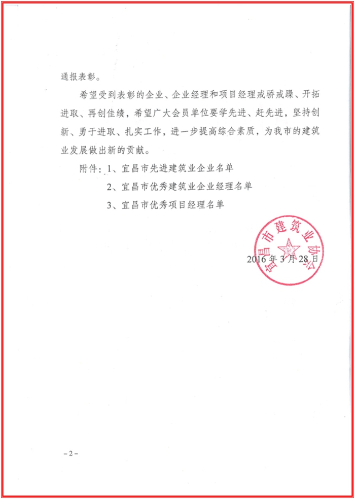 宜昌市建筑业协会2015表彰决定