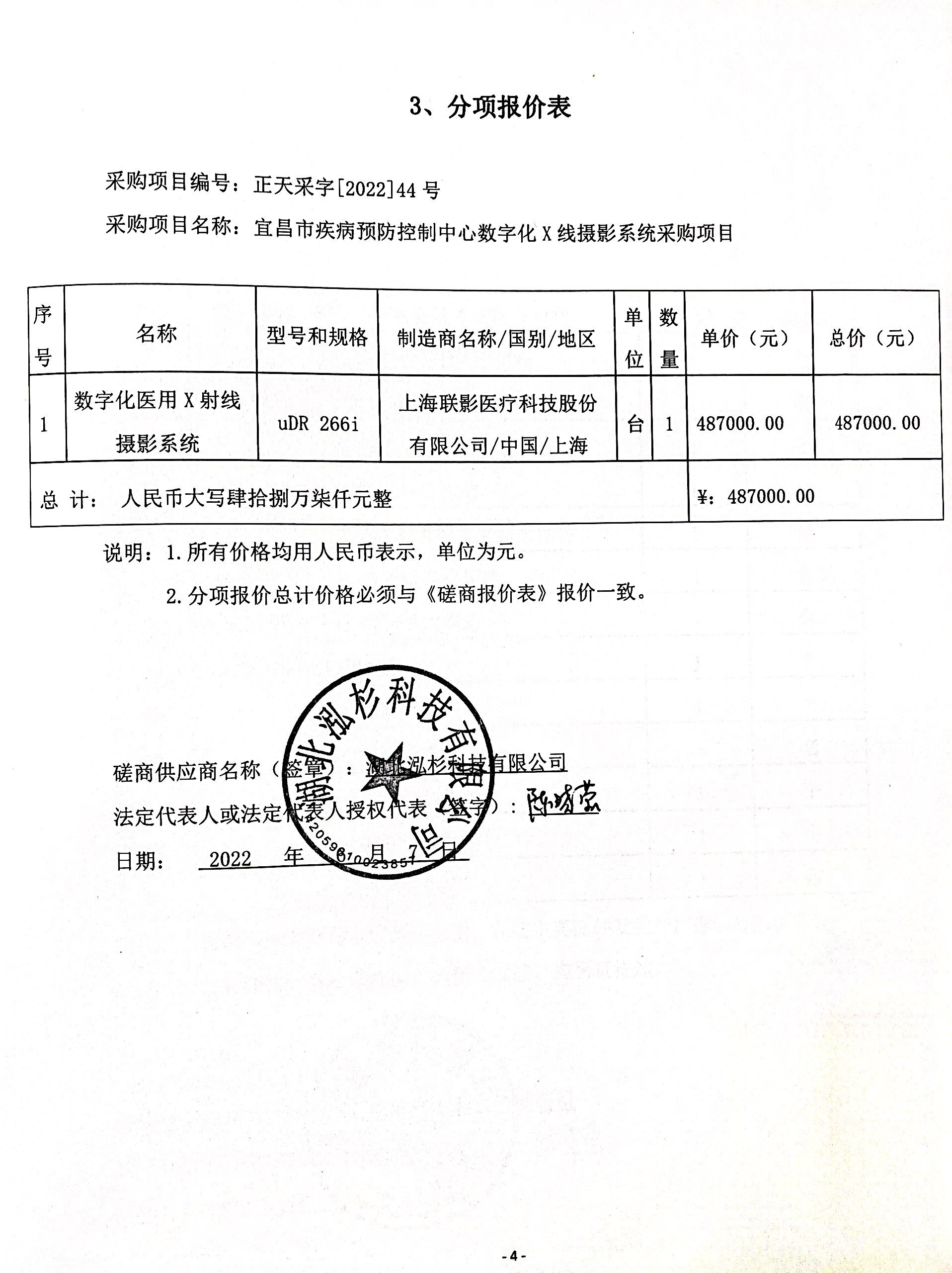 二、项目名称:宜昌市疾病预防控制中心数字化X线摄影系统采购项目