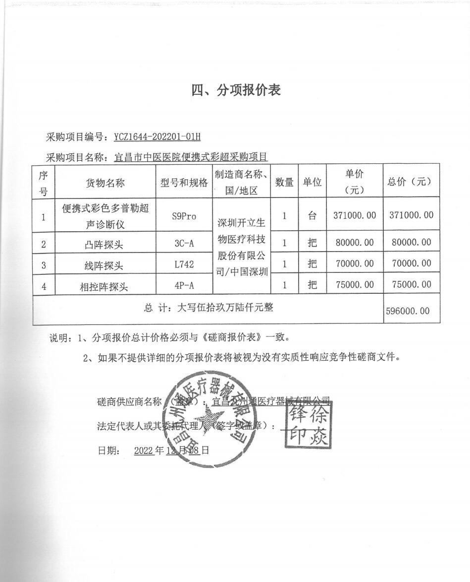 三、项目名称:宜昌市中医医院便携式彩超采购项目